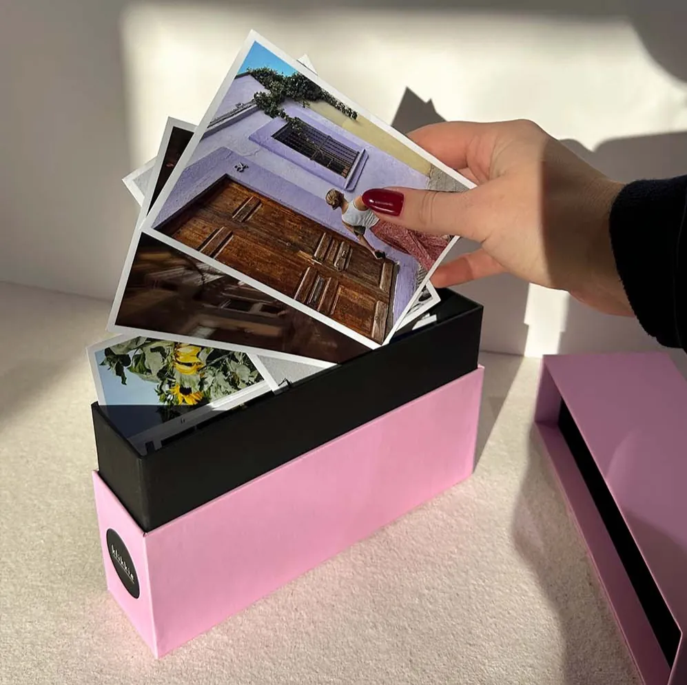 Store your favorite photos in our stylish memory box. Designed with a soft-touch laminate to protect against scratches and spacious enough to hold even XL photos. This simple, elegant solution is perfect for preserving your cherished memories, with enough space to store a full year of klikkie photos.