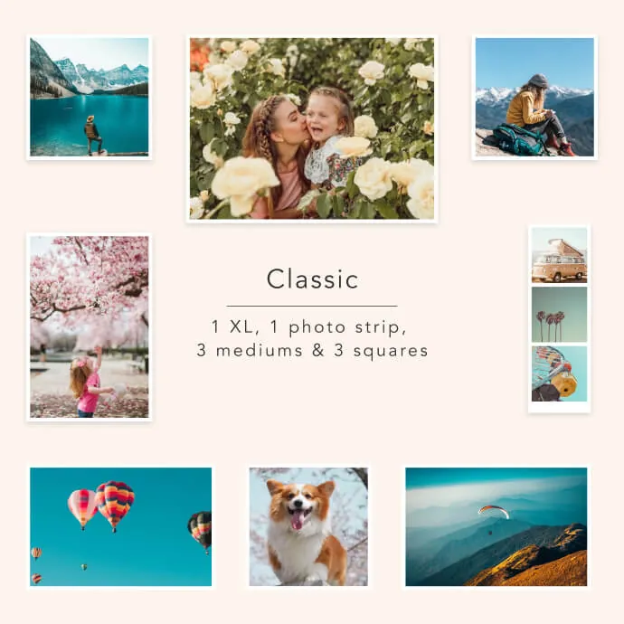 Als je kiest voor de Original Set ontvang je alle vier onze formaten: het medium, vierkante en xl-formaat én de schattige fotostrip! De hoge kwaliteit foto’s met de iconische witte randen laten jouw foto’s stralen en door de snelle, gratis levering ligt jouw fotoset binnen no time op je deurmat!