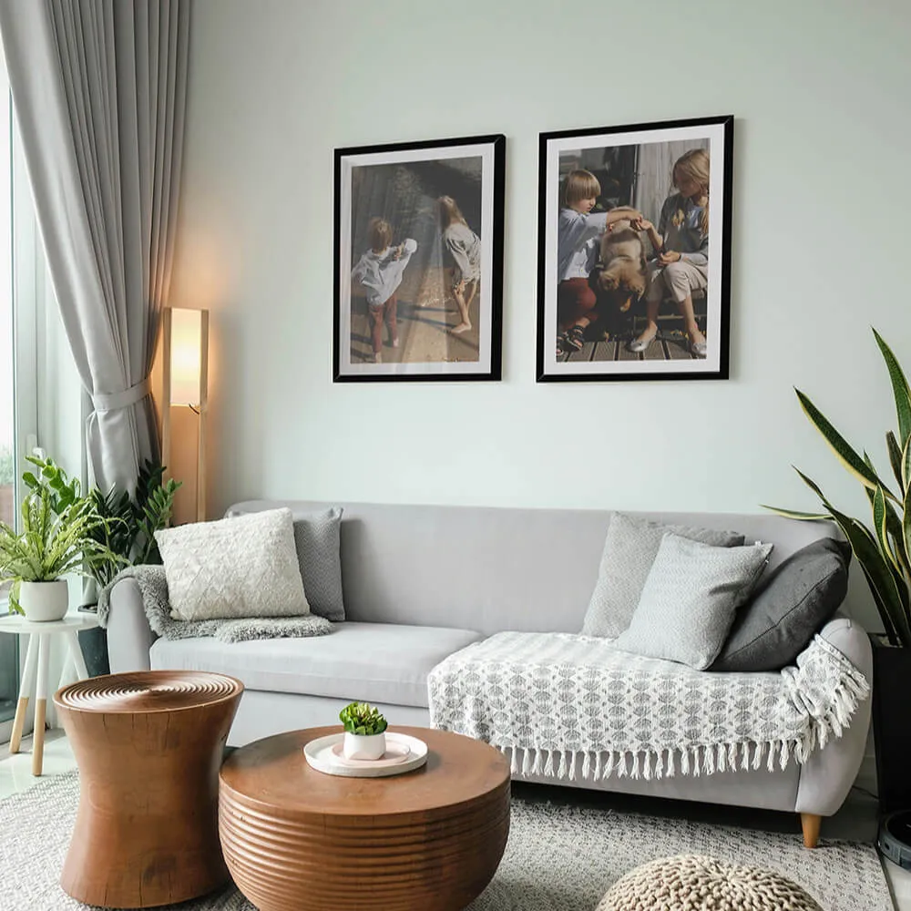 De premium Foto in Lijst - XL is dé perfecte decoratie voor aan je muur! Met drie verschillende lay-out opties krijg je de mogelijkheid om meerdere foto’s op te hangen, allemaal van galeriekwaliteit. De duurzaam houten lijst is verkrijgbaar in de kleuren zwart, wit, grijs en walnoot en is bij levering klaar om op te hangen!