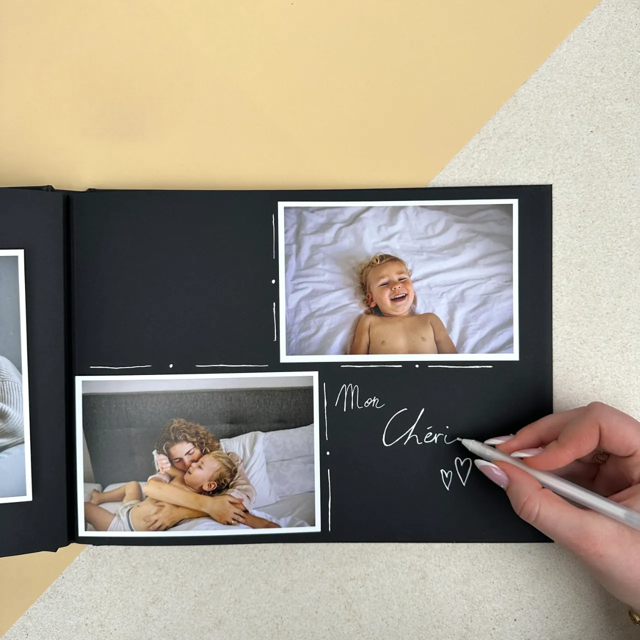 Een speciale witte pen om leuke anekdotes in het album te schrijven